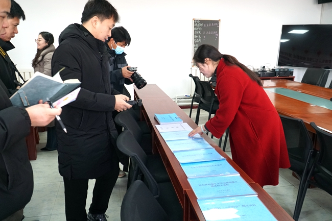 乌沙塘村妇联主席马园龙(右)为宁夏“移风易俗宣传月”集中采访活动记者讲解该村的“五色”管理台账。