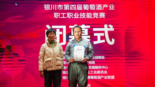 宁夏新闻网讯(记者 夏欣 文/图)12月5日,银川市第四届葡萄酒产业职工职业技能竞赛在银川宝什利德酒店圆满落幕。本次竞赛由银川市总工会、人力资源和社会保障局、文化旅游广电局、葡萄酒产业发展服务中心联合主办,以“培育工匠人才、赋能产业发展”为主题,吸引全市15家葡萄酒企业近60名技术骨干同台竞技,通过“培训+竞赛”模式锤炼专业技能,为贺兰山东麓葡萄酒产业高质量发展注入人才动力。