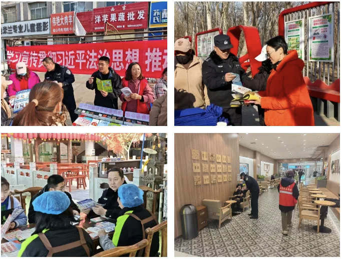 金凤区公安分局在金凤万达商圈设点,通过横幅展板、案例讲解等形式普及宪法知识,发放资料300余份、解答咨询50余人次;丰登派出所深入集市,以接地气话语宣讲反诈、禁毒安全知识,并同步排查现场安全隐患;上海西路派出所联合社区开展专题宣讲,指导老年群体安装国家反诈中心APP;黄河东路派出所民警走进校园,为师生普及宪法知识和预防校园欺凌知识。
