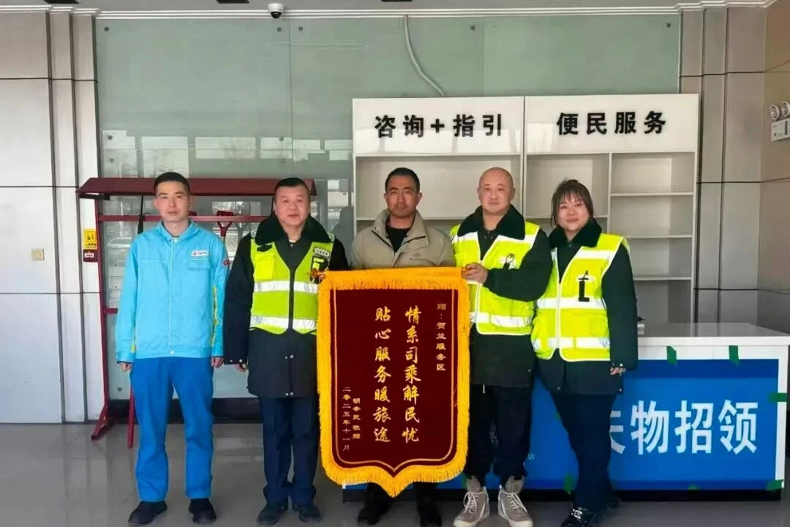 此外,通过组建清洁专班常态化维护环境卫生,设立巡检专员定期检查危化车辆管控、卫生环境、“司机之家”等关键区域,确保司乘感受到服务区服务质量有实实在在的变化。党员们还主动帮助司乘寻回遗失物品、协助赶时间的乘客协调行程等,涌现出不少暖心事迹。贺兰、泾河源等服务区已收到群众赠送的锦旗,其他服务区也屡获来电表扬,党员骨干以实际行动将“一个党员就是一面旗帜”的承诺落到实处。