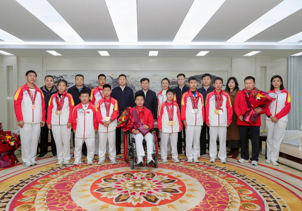 宁夏新闻网讯(记者 丁冬 李瑶 文/图 李瑶/视频)12月16日,刚刚参加完全国第十二届残疾人运动会暨第九届特殊奥林匹克运动会的平罗县籍残特奥健儿带着11枚金牌、3枚银牌、1枚铜牌的优异战绩载誉凯旋。
