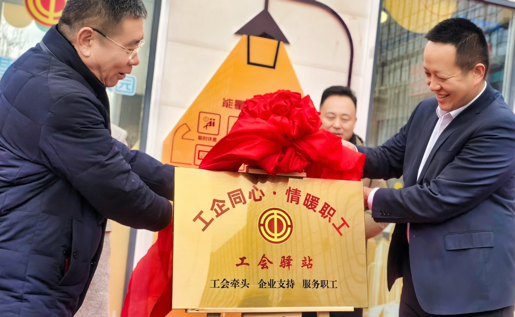 宁夏新闻网讯(记者 闫文丽 文/图)12月19日下午,银川市金凤区悦海新天地后广场洋溢着暖意与欢笑。随着红绸缓缓落下,“悦海新天地工会驿站”正式揭牌启用,标志着这一由金凤区总工会、上海西路街道与宁夏悦海国际投资建设集团物业服务有限公司共同打造的“暖心驿站”正式对外开放。