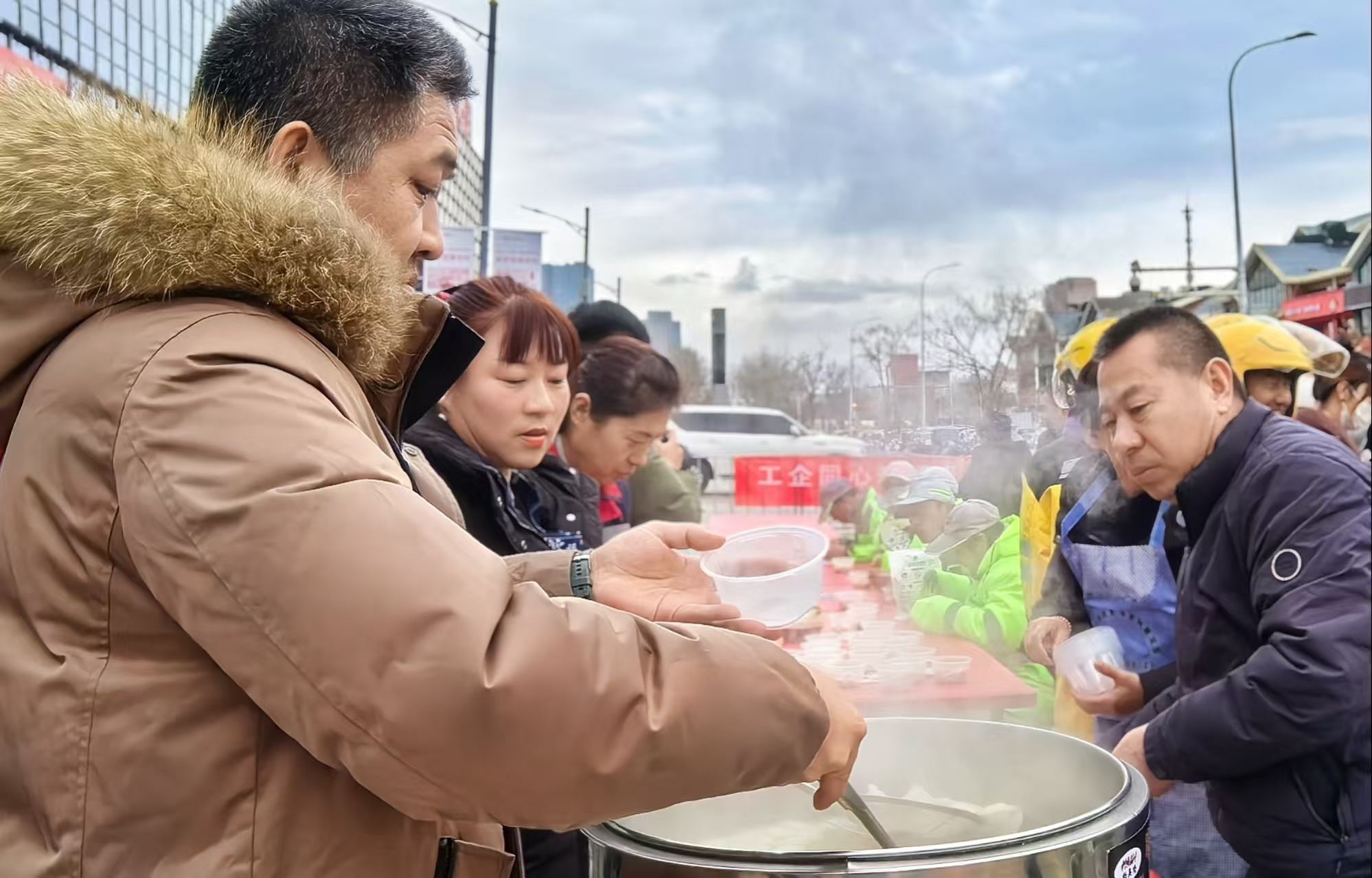 仪式现场,外卖员王师傅手捧热饺子,感慨道:“刚送完三单,能在这儿吃口热的、充个电、歇口气,真是太暖心了!”像王师傅一样,当天共有100余名外卖员、环卫工人、代驾司机等新就业形态劳动者和户外劳动者代表,共同见证了这一温馨时刻。