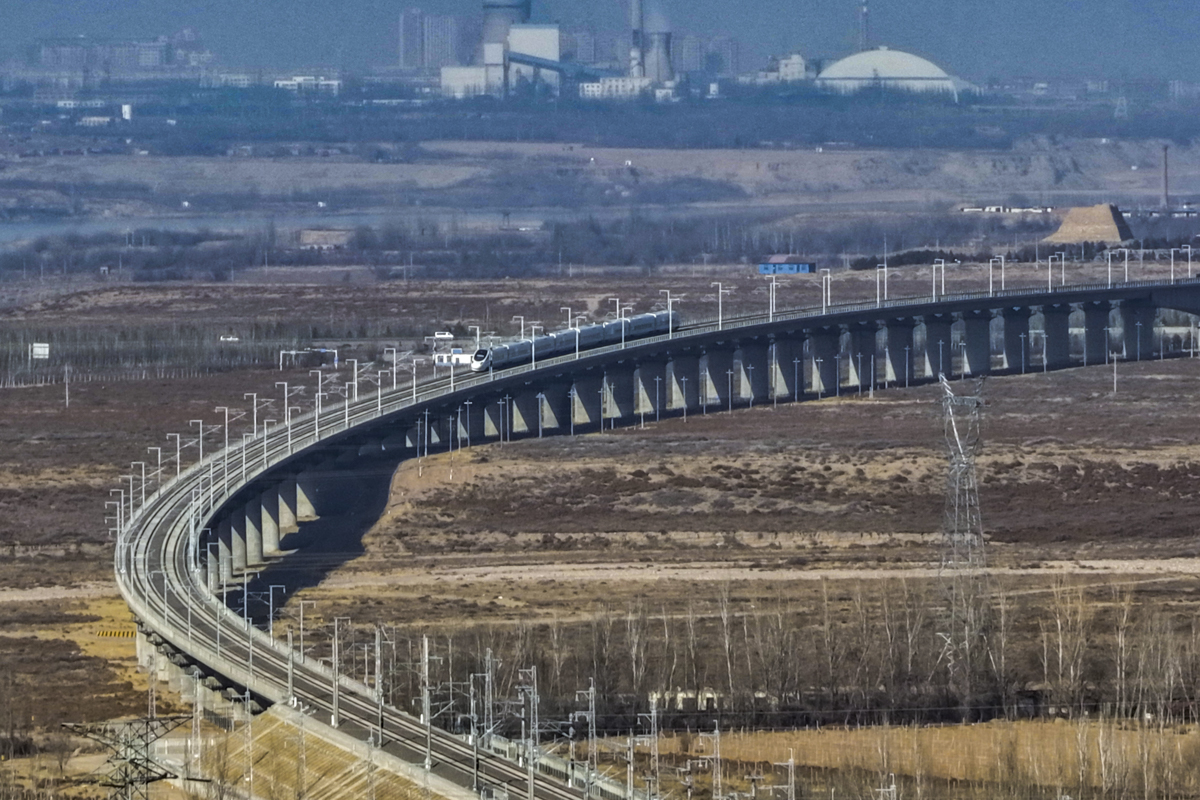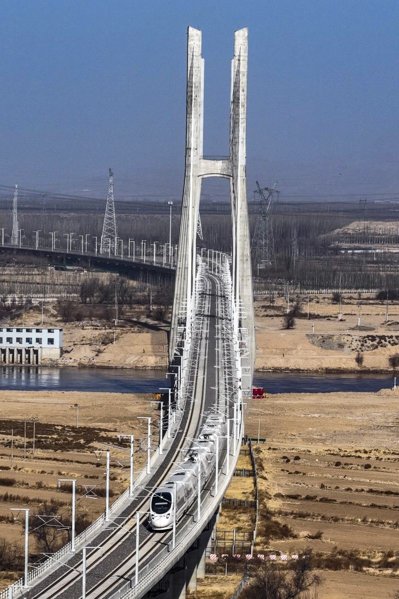 12月23日,包银高铁正式开通运营。当日12时许,首趟列车驶过包银高铁乌海黄河特大桥,飞驰进入宁夏。作为国家“八纵八横”高铁网京兰通道的重要组成部分。包银高铁的全线建成将彻底打通宁夏、内蒙古等西部省份与华北地区的快速客运通道,将极大便利沿线人民群众出行,对推动黄河流域高质量发展,助力新时代西部大开发战略实施,具有十分重要的意义。 宁夏新闻网记者 祁瀛涛 摄