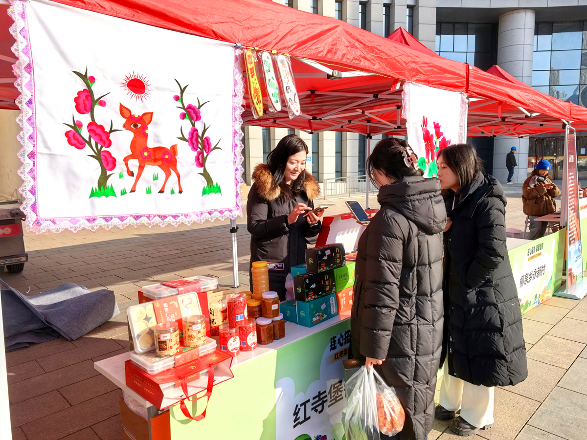 宁夏新闻网讯(记者 杨兆莲 文/图/视频)12月26日,宁夏工人文化宫比平日热闹许多。枸杞的甘醇、羊肉的鲜香、手工醋的陈香交织弥漫,一场由自治区总工会、团委、妇联联合发起的“连心搭桥·群团促销”活动正在这里举行。此次活动旨在深入落实自治区“稳增长促发展攻坚年”行动部署,通过群团组织的桥梁纽带作用,推动红寺堡特色农产品走进群团机关,直达干部职工身边。