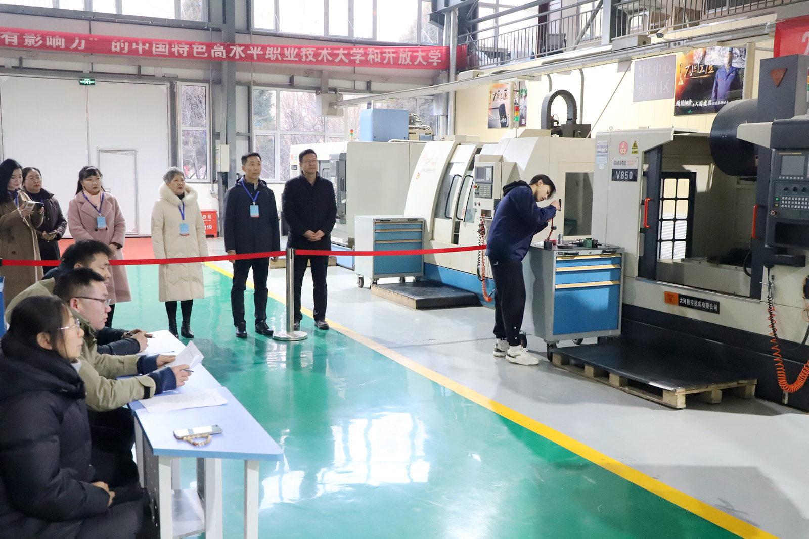 走进现代产业学院,真实生产场景中的实践教学、校企双师共研人才培养方案、中小学生沉浸式职业体验等场景随处可见,生动诠释着平台建设的实践成效。学校牵头的8所自治区级现代产业学院(含培育单位)成果丰硕:联合开发行业标准20项、教材20余套,“双师型”教师比例提升至85%以上,开展职业技能培训近8000人次,组织中小学生职业体验6000余人次,逐步从“项目建设”转向“实体运营”。聚焦产业需求,学校全年高质量完成30项专项课题验收,一批“从产业中来、到课堂中去”的研究成果,持续转化为教学改革的“活水源泉”和人才培养的“硬核支撑”。