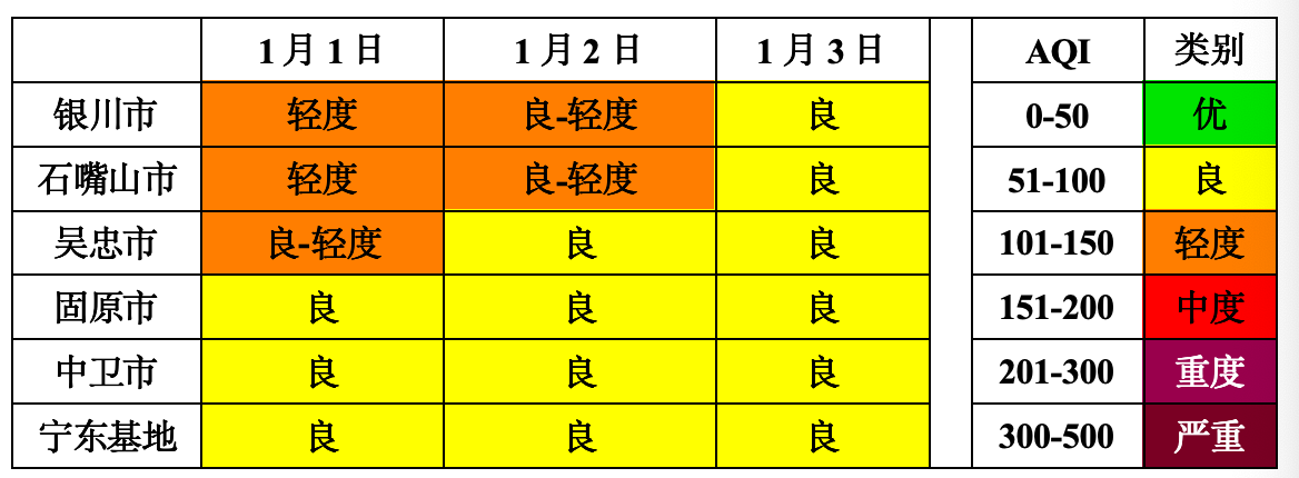 2026年1月1日—3日全区环境空气质量预报刷色表