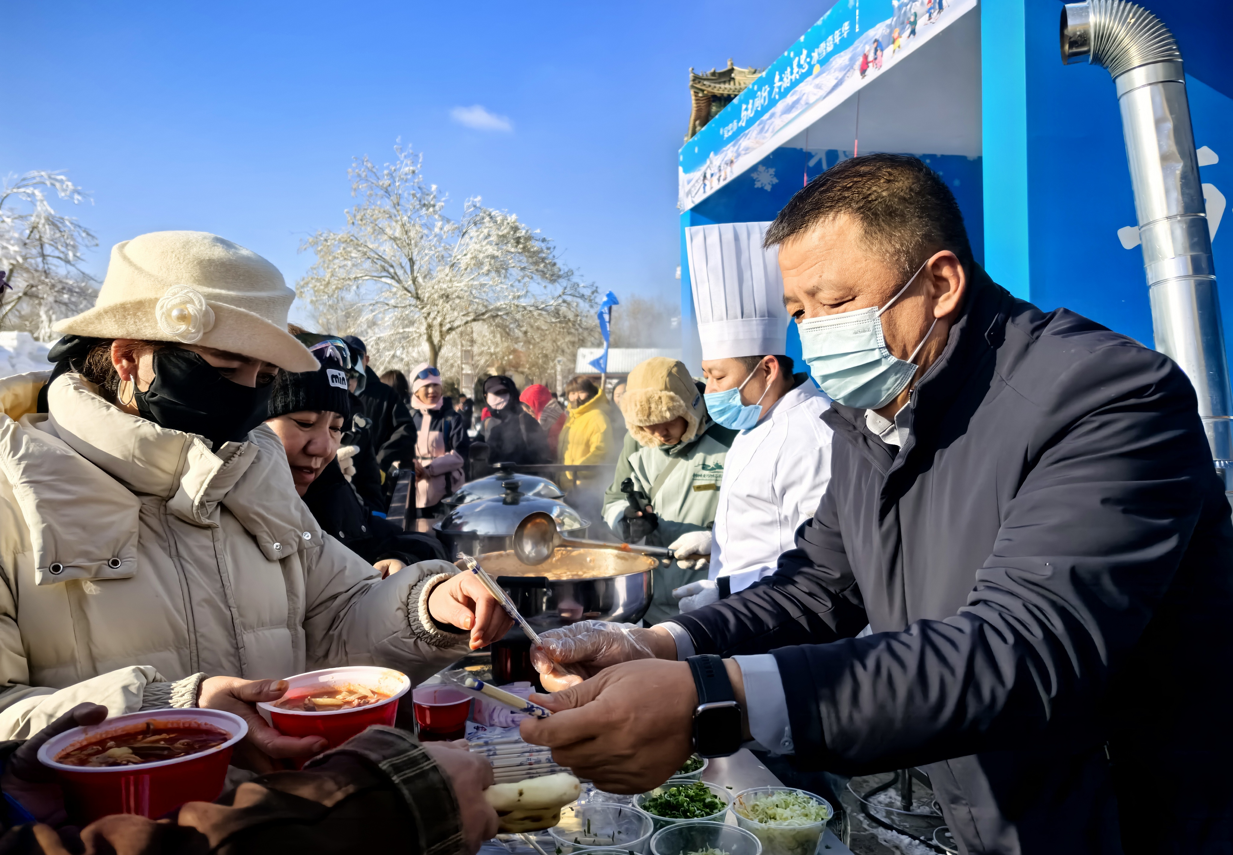 启动仪式上,吴忠市冬季旅游精品线路同步重磅发布。七条特色线路精准覆盖美食、冰雪、非遗、研学、运动、生态等多元体验场景,形成“一线路一主题、多场景全覆盖”的冬季旅游产品体系,为不同需求的游客提供了清晰、丰富的出行指引。活动现场,美食与非遗体验区成为人气焦点。大锅羊肉、鲜香羊杂等吴忠特色美食在展位一字排开,免费品鉴活动让游客大饱口福,直观感受“冬游吴忠好滋味”的独特魅力;本土非遗品牌集中亮相非遗展区,传统工艺与现代审美碰撞交融,游客在观赏、互动中沉浸式感受吴忠非遗的活态传承魅力。
