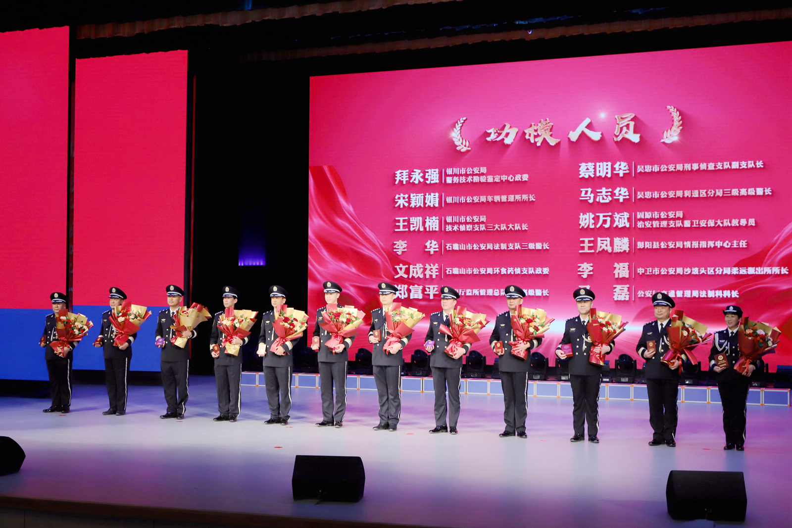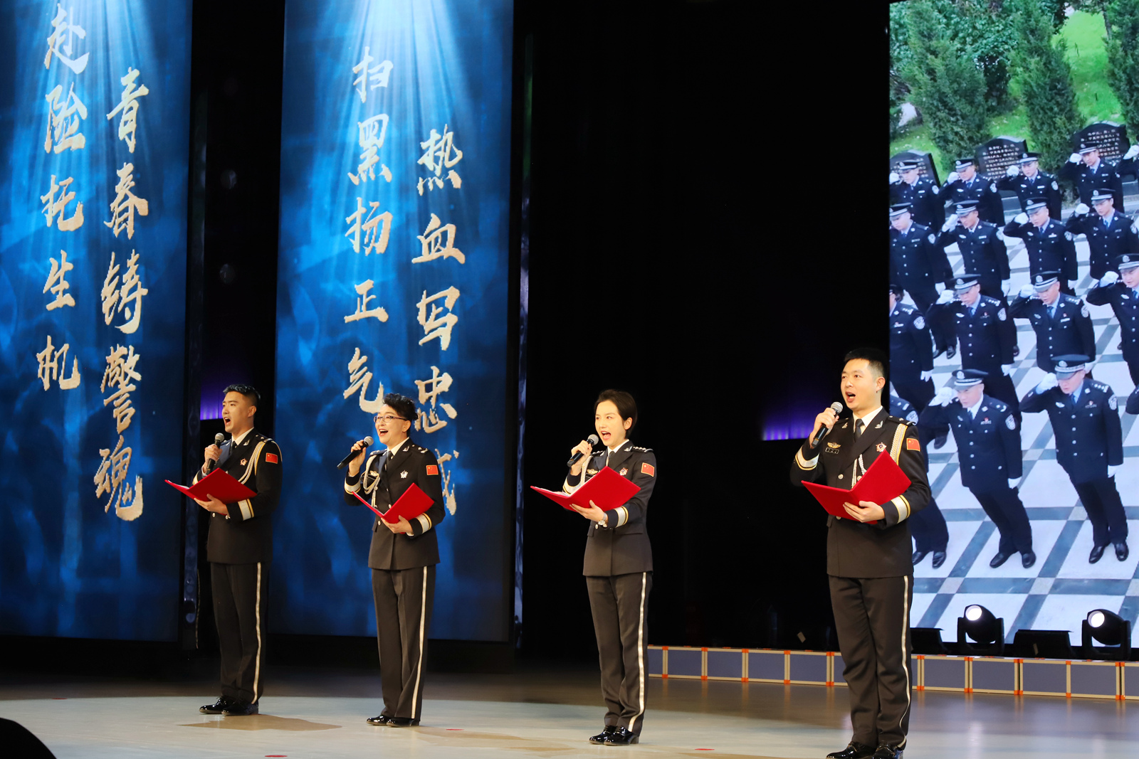 宁夏公安队伍是一支有着光荣传统和优良作风的队伍,也是一支英雄辈出、正气浩然的队伍。活动下篇“致敬英雄 续写荣光”成为全场最动容的时刻。活动通过深情朗诵、歌曲传唱、事迹追忆等形式,深切缅怀近年来献身宁夏公安事业的杨春华、王大为、王学武、杨国林四位公安英烈。他们用热血与生命践行“人民公安为人民”的铮铮誓言,其精神如明灯般照亮征程,激励着全区公安民警辅警以初心赴使命,以实干续写荣光。