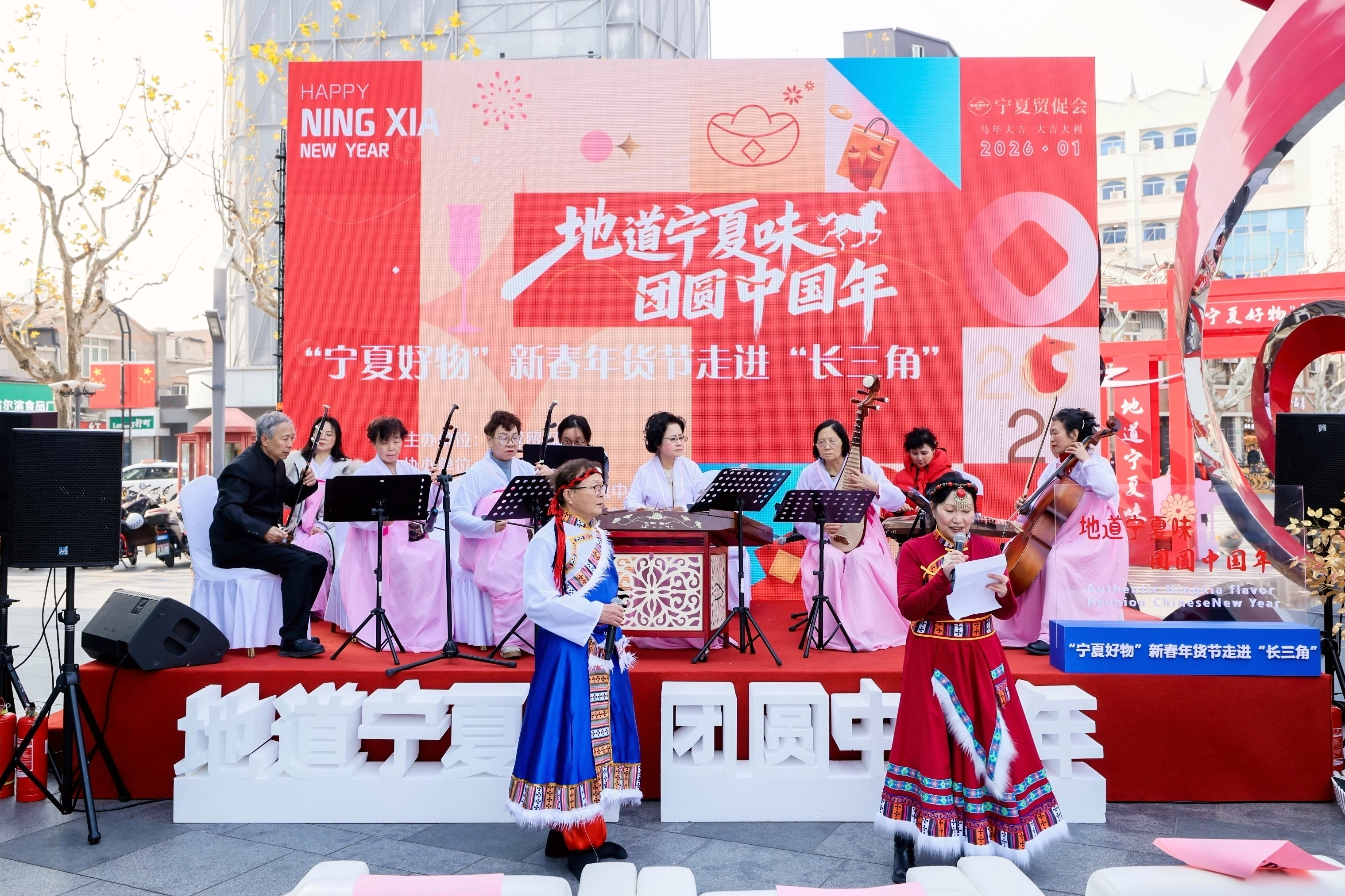 据悉,本次“宁夏好物”新春年货节走进长三角活动,是宁夏贸促会深入贯彻落实自治区“稳增长促发展攻坚年”行动部署的具体举措。活动紧抓春节前人流与消费高峰,组织60余家区内特色优质企业参与,于2026年1月10日至25日期间,在上海、杭州、南京三市采取“轮流展销+沉浸大集+交互体验”模式开展巡展。上海站为本次巡展的启动站,三地分别设置700平方米主题展区,展期各为4至5天。同时,活动依托“宁夏优品全球行”平台和网络达人资源开展线上直播销售,全力推动更多宁夏优质农产品走进长三角市场,走上江浙沪消费者的餐桌。(图片由宁夏贸促会提供)