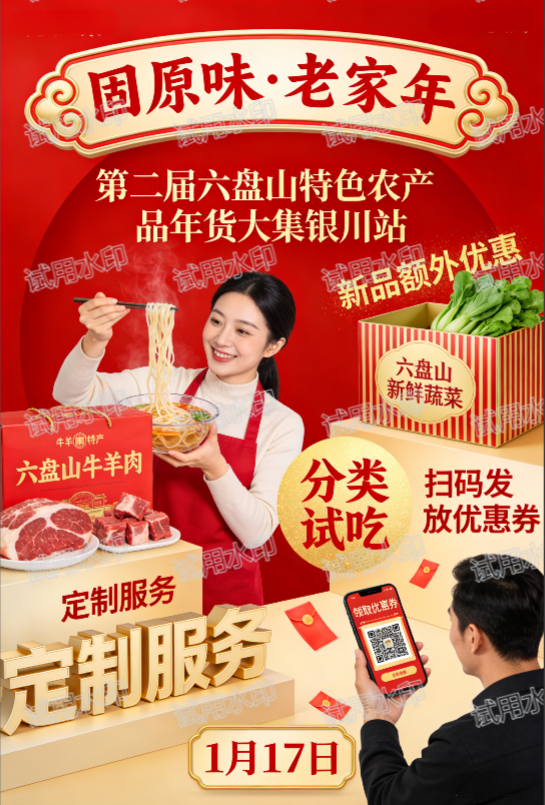 无法亲临现场的市民也可参与“云赶集”。1月17日至2月25日,通过“六盘丰物集”小程序,即可享受年货礼单选购、抽红包、满减、直播带货等线上服务,足不出户囤足六盘山年味。这场充满烟火气与故乡情的年货大集,将让每一份年货都承载温暖,为新年添彩。