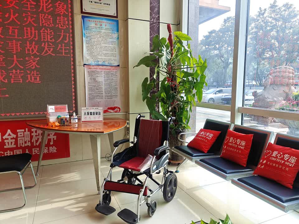 走进人保财险宁夏分公司辖内各营业厅,适老化服务细节处处可见。大武口支公司精心打造“爱心服务驿站”,配备轮椅、老花镜、应急药品、雨披等便民物品,设置“爱心专座”与“老年人优先窗口”,并安排专人提供全程引导与协助。西夏支公司围绕“重阳守护”主题,开展专项适老服务,以一杯热茶、一句乡音、一次俯身讲解,用亲切的方言解读保单条款,让老年客户在业务办理时感受到尊重与关怀。