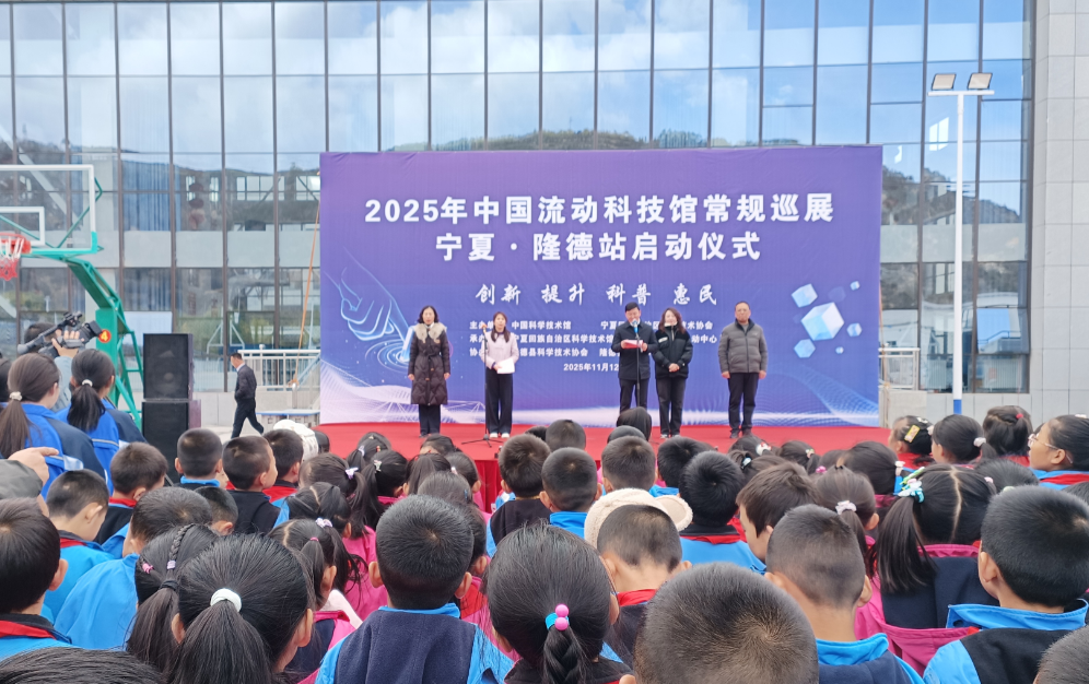 11月12日,2025年中国流动科技馆常规巡展宁夏隆德站启动仪式举行。活动由中国科学技术馆、宁夏科学技术协会联合主办,宁夏科技馆承办,隆德县科协、教育局协办。巡展以“创新提升科普惠民”为主题,将优质科普资源带到基层,激发青少年科学兴趣,提升全民科学素质,同时以科技为纽带,铸牢中华民族共同体意识,让民族团结之花在科普沃土中绚丽绽放。