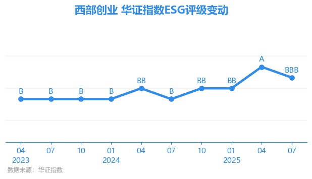 日前,华证指数公布了新一期的ESG评级结果,西部创业(000557.SZ)获得BBB评级(华证指数评级为C起至AAA九档,C为最低档,AAA为其最高一级评级/AA为其第二档),上一期(2025年4月30日)ESG评级为A。本期ESG评级在22家地面运输行业A股上市公司中排名第1(上一期排名第2)。