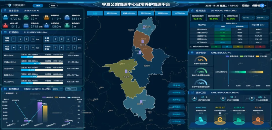 图为宁夏公路管理中心日常养护管理平台。