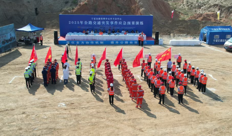 图为宁夏公路管理中心中卫分中心2025年公路交通突发事件应急预案联合演练现场。
