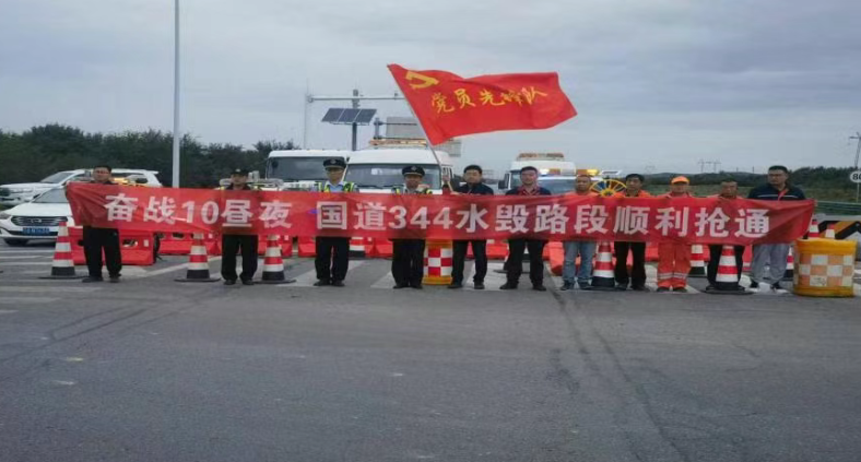 图为奋战10个昼夜,国道344线水毁路段顺利抢通。
