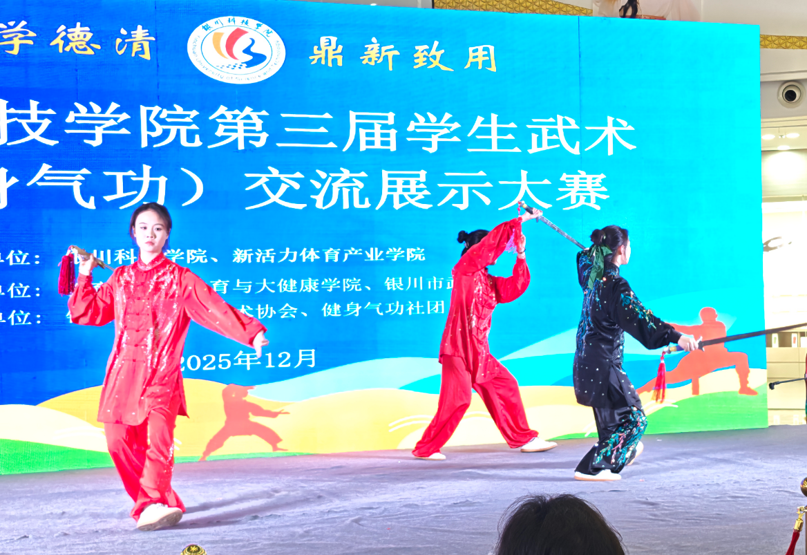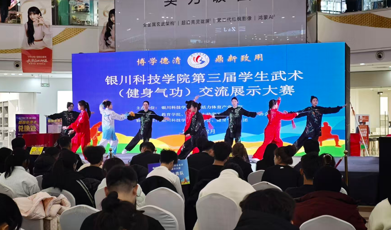 12月21日晚,银川西夏万达广场内拳脚生风、刀棍铿锵,银川科技学院第三届学生武术(健身气功)交流展示大赛在此拉开帷幕。来自全校的130余名学子齐聚赛场,以拳会友、以武展姿,为现场观众献上了一场独具韵味的体育文化盛宴。