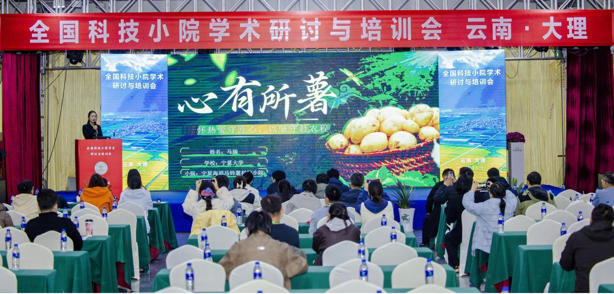 12月13日,在“全国科技小院学术研讨与培训会”的舞台上,聚光灯下的马瑞略显紧张却格外坚定。这位来自宁夏海原马铃薯科技小院的研二学生,正分享着自己从“逃离乡土”到“扎根泥土”的蜕变故事。当主持人宣布她荣获研究生专场竞赛二等奖时,她满怀激动与感恩。这个奖项,不仅是对一个青年学子的肯定,更是一段关于成长、选择与承诺的见证。