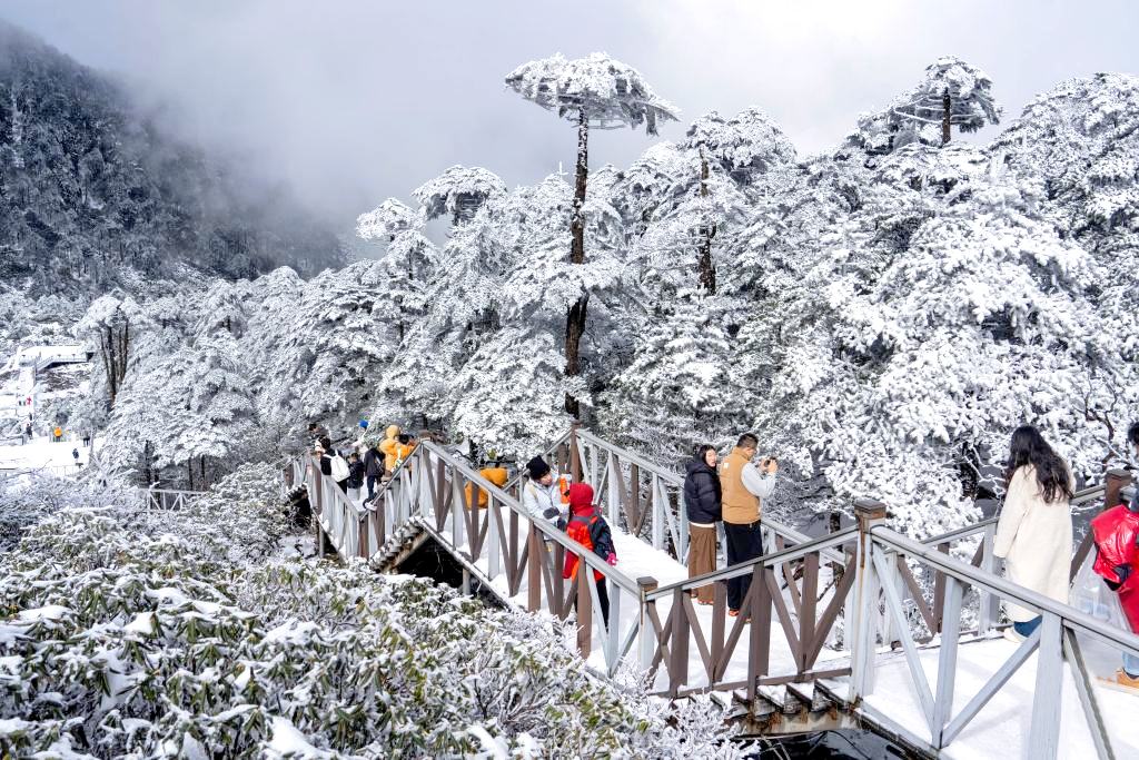 受冷空气影响,云南大理苍山迎来2025年入冬后的首场降雪。银装素裹的山林与山脚下的洱海、古城相映成趣,构成一幅水墨画卷。