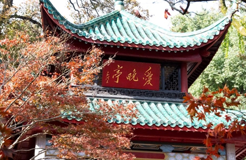 湖南省长沙市岳麓山风景名胜区内的枫叶迎来最佳观赏期,景区内的爱晚亭成为众多游客参观、拍照“打卡点”。据介绍,爱晚亭因唐朝诗人杜牧“停车坐爱枫林晚,霜叶红于二月花”诗句而得名,为全国重点文物保护单位。