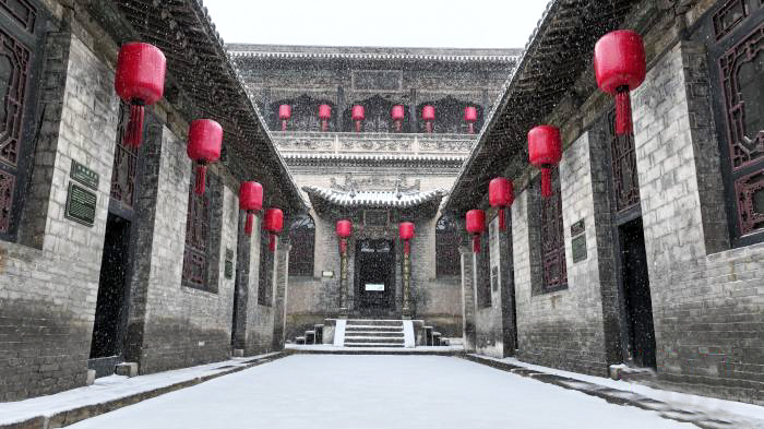 12日,山西祁县乔家大院迎来今冬初雪。百年晋商宅院的沧桑与冬雪柔润相融,宛如一幅水墨画卷。