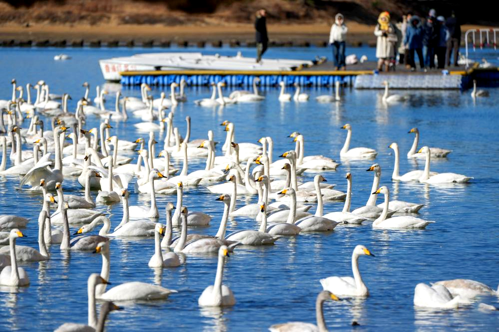 入冬以来,大批大天鹅在山东省荣成市越冬,目前飞抵荣成越冬栖息的大天鹅数量已超过6000只。山东荣成是鸟类南迁北移的重要中转站,也是亚洲主要的大天鹅越冬栖息地之一,每年有大量大天鹅从西伯利亚等地来此越冬。