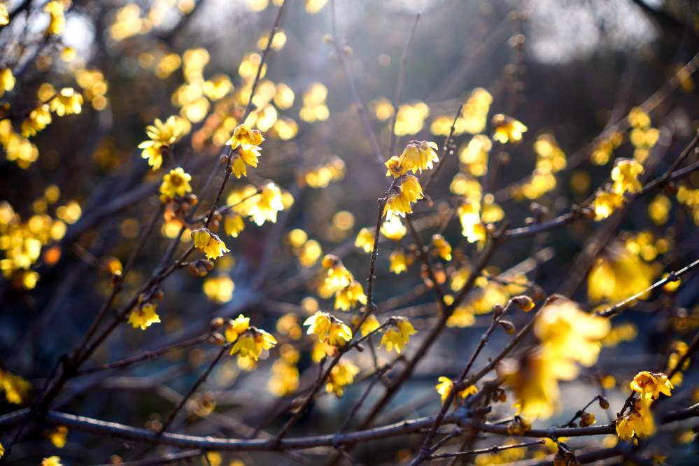 寒冬时节,位于山东济南市千佛山公园腊梅园内的一千多棵腊梅树花朵竞相绽放,吸引众多游客和市民前来欣赏。