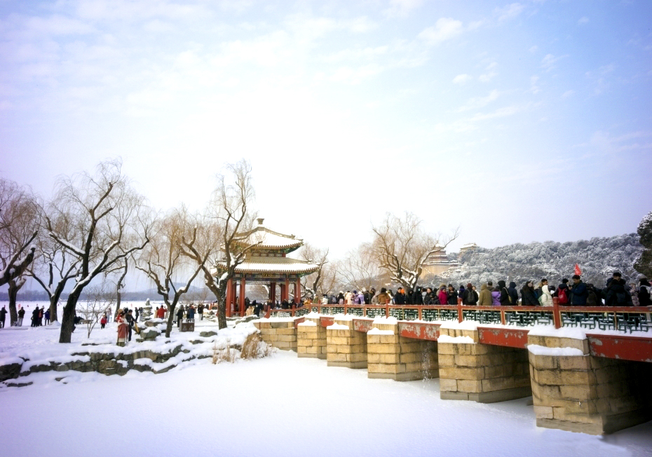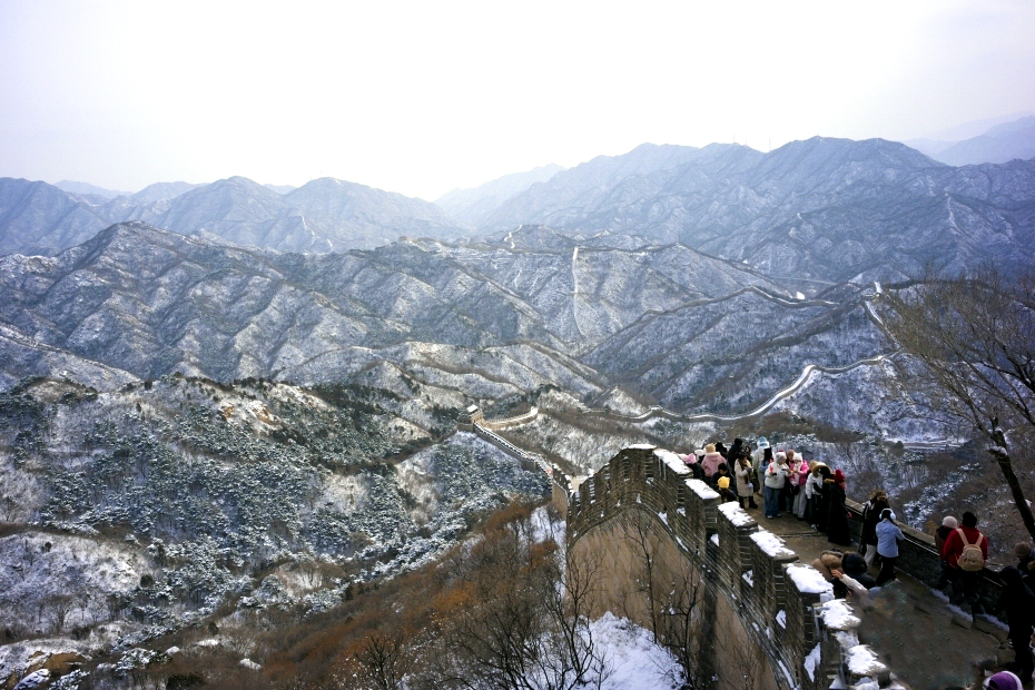 1月18日,北京,游客登八达岭长城游览、赏雪景。