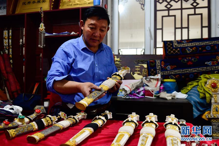 今年51岁的更求彭措是芒擦藏刀第四代传人。在传承藏家制作工艺的同时,他还认真带徒传艺,将工艺技术免费传授给周边农牧民学徒,至今已累计为百余人传授藏刀煅制工艺,带领周边村民走上致富之路。