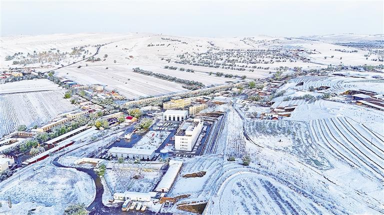 盐池县麻黄山乡,山川、田地、屋舍披上了一层“银装”。 宁夏日报报业集团全媒体记者 祁国昌 王娜 马赛尔 摄