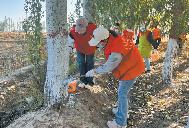 近日,平罗县城关镇组织干部群众500余人,到城关镇新建村,对109国道沿线林带进行除草和树干涂白,齐心协力为农田水利设施“舒筋活血”,共同维护美丽乡村生态环境。