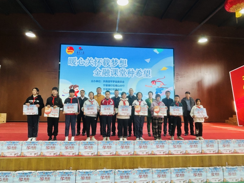 活动中,共青团平罗县委员会携手宁夏银行石嘴山分行及平罗支行、宁夏大地循环发展股份有限公司、宁夏新丝陆服饰有限公司、牛佰仕(宁夏)乳制品有限公司等爱心企业为陶乐中学100位贫困学生送上崭新校服。宁夏银行平罗支行业务员为同学们带来金融知识讲座,通过PPT讲解、情景模拟、互动问答等形式,向学生们普及反诈防骗、理性消费等知识,提升风险防范意识。