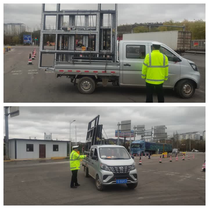 11月6日上午,固原高速交警三大队民警在隆德收费站站口执勤时,一辆载货超长的银灰色轻型货车引起了民警的注意。民警随即示意驾驶员靠边停车,经检查,发现该车车厢所载货物严重超长。据了解,该驾驶员要从隆德运送货物往平凉,想跑低速,但是害怕被交警检查,就上了高速,没想到在隆德收费站上站口被执勤民警查获。民警对驾驶员载货超长的违法行为进行了批评教育并做出了相应处罚,要求驾驶员将所载货物进行转运,消除了行车安全隐患。