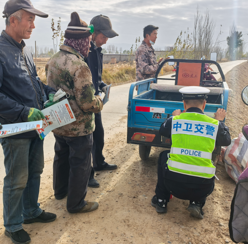 近日,中卫市公安局交通管理支队沙坡头区三大队组织警力深入田间地头,开展“护秋收”交通安全宣传活动。