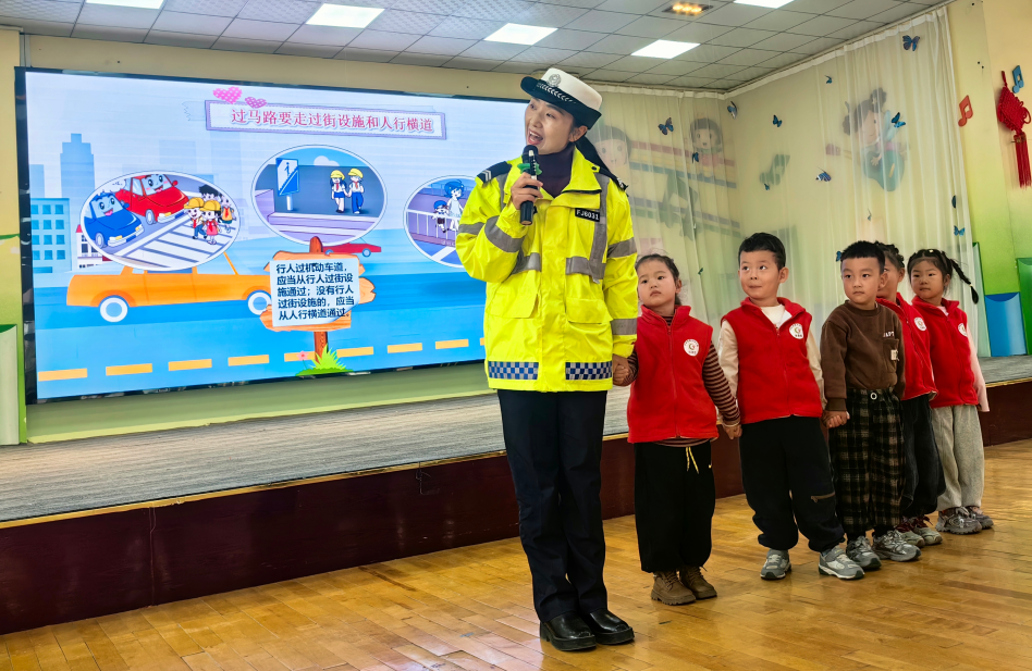 最热闹的还属“情景模拟”环节。交警手拉手带着孩子们过“迷你马路”。看着孩子们认真的样子,老师们忍不住笑了:“这比我们平时讲多少遍都管用。”