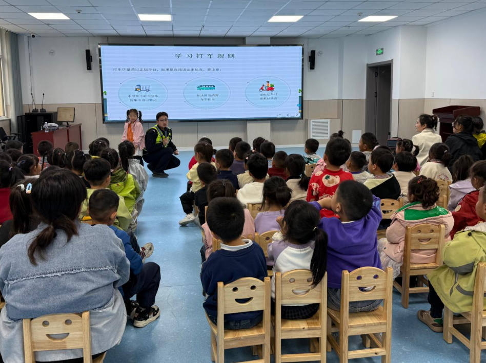 考虑到幼儿的认知特点,民警精心准备了交通标志卡片、动画短片等教具,用孩子们能听懂的语言解读红绿灯、斑马线、禁止通行等标志的作用。在“交通安全拍手歌”环节,民警带领孩子们边拍手边念口诀,将“红灯停、绿灯行”的规则深深印在脑海里;“安全过马路”情景模拟中,民警扮演驾驶员,孩子们手持“小行人”标识,在引导下学习观察车辆、快速通过路口。