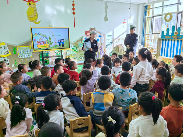 民警结合幼儿年龄小、好动的特点,用图文并茂的形式,为孩子们讲解走路要走人行道、靠右行、不在马路上乱跑、不随意挣脱大人的手等交通安全知识。提醒孩子们过马路要做到“一看二慢三通过”,乘坐汽车时务必要系好安全带,搭乘摩电车辆时要规范佩戴安全头盔。随后运用提问抢答、趣味游戏等互动形式,普及“一盔一带”“汽车盲区”等交通安全知识,教育和引导小朋友们安全文明出行。(青铜峡市公安局交管大队 刘立锋)