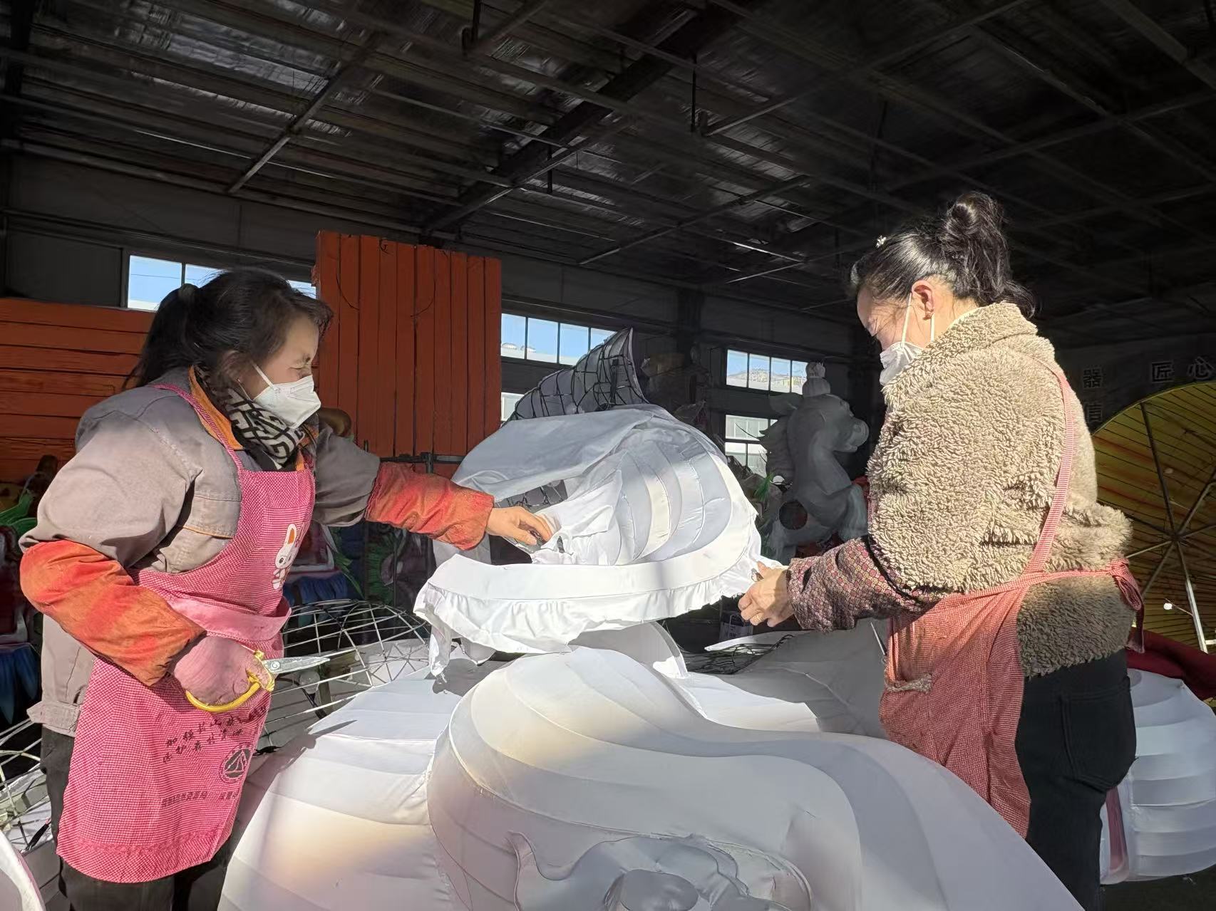 年关将至,工人们正在赶制花灯。