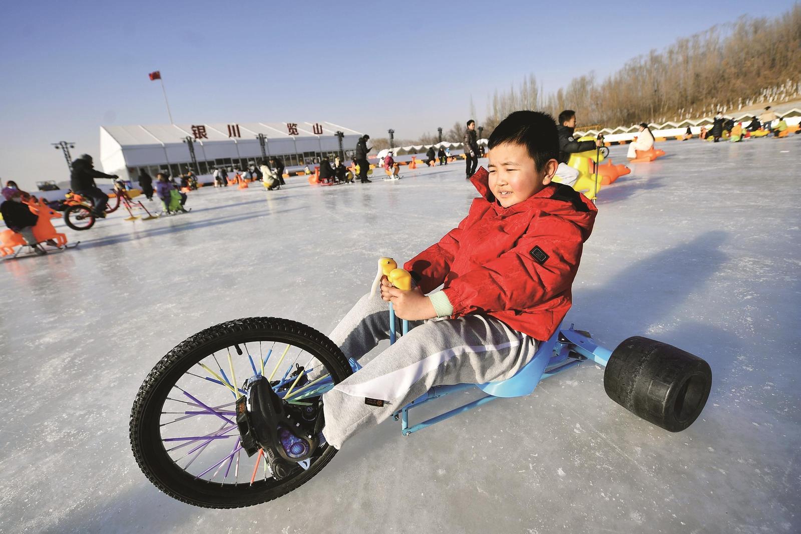 小朋友体验冰场骑行乐趣。