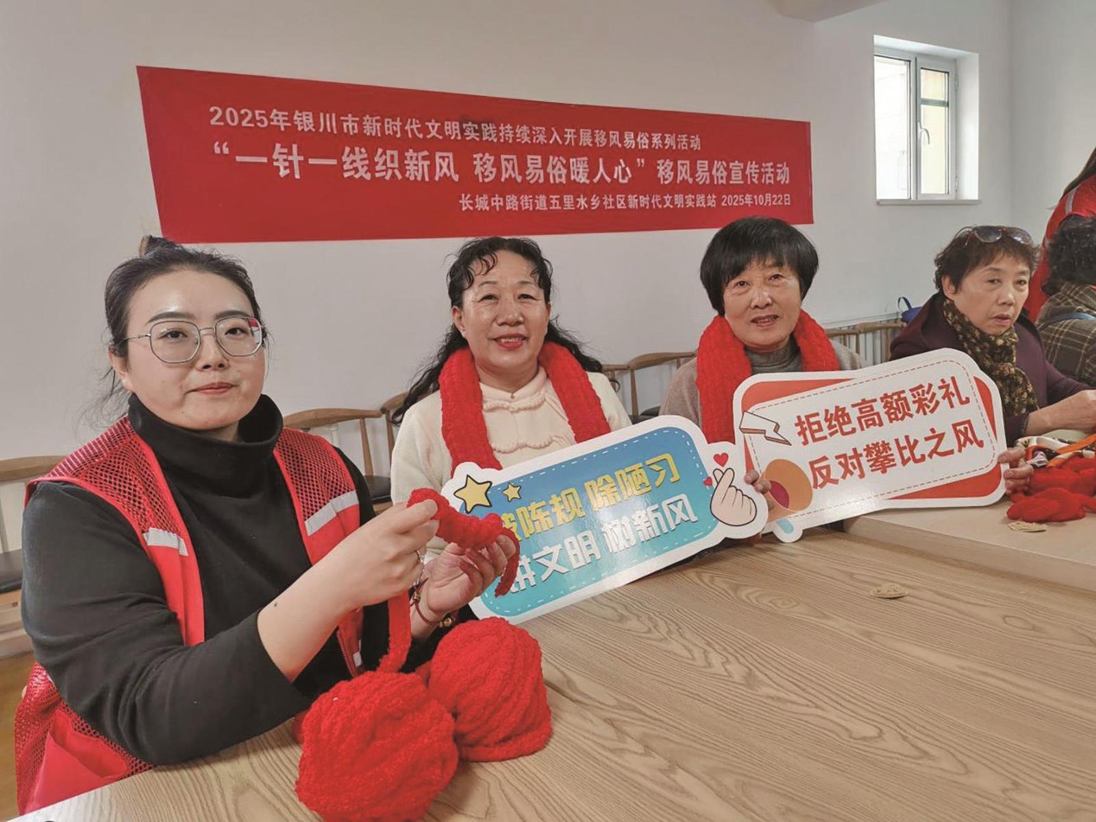近日,金凤区长城中路街道五里水乡社区活动室内暖意融融,20多位居民在红白理事会的组织下,一边织围巾,一边你一言我一语地聊着身边事。“王阿姨把彩礼钱省下来帮娃创业,这才是实实在在的好事!”“李叔叔简办葬礼后资助老人,既尽了孝心又积了德!”——移风易俗的文明理念,就在这样的家常话中悄然入心。