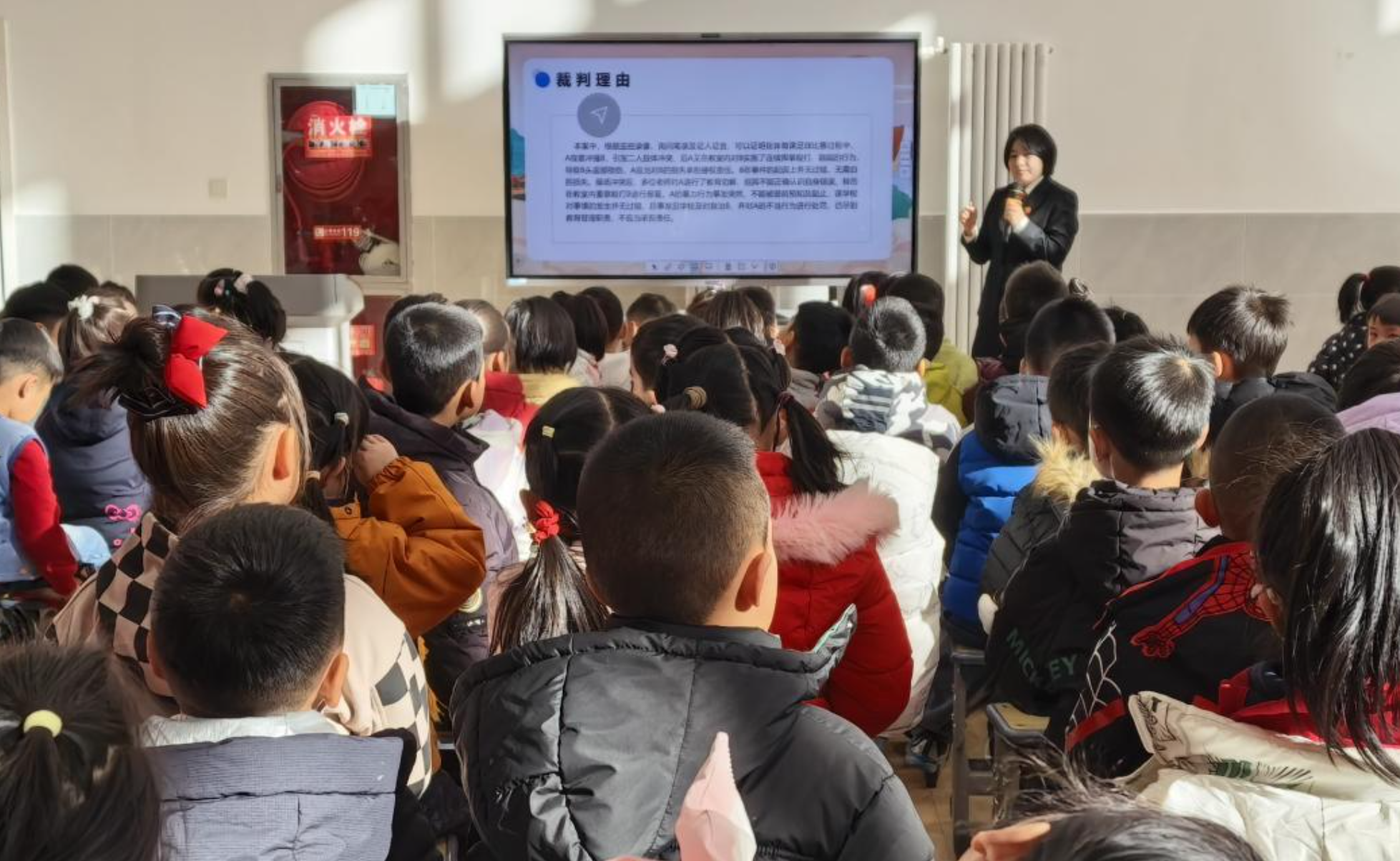 反校园霸凌是此次讲座的重中之重。赵雅慧结合近年来审理的未成年人典型案例,以生动具体的事例揭示校园霸凌的严重危害,引导孩子们认清霸凌行为的法律后果。“遭遇校园霸凌,务必牢记‘不沉默、不畏惧、善求助’!”她向孩子们传授应对霸凌的实用方法,现场演示如何正确向老师、家长寻求帮助,同时呼吁各民族同学互帮互助、团结友爱,发现霸凌行为及时制止或报告,共同抵制校园暴力,营造安全和谐、互帮互助的校园氛围。