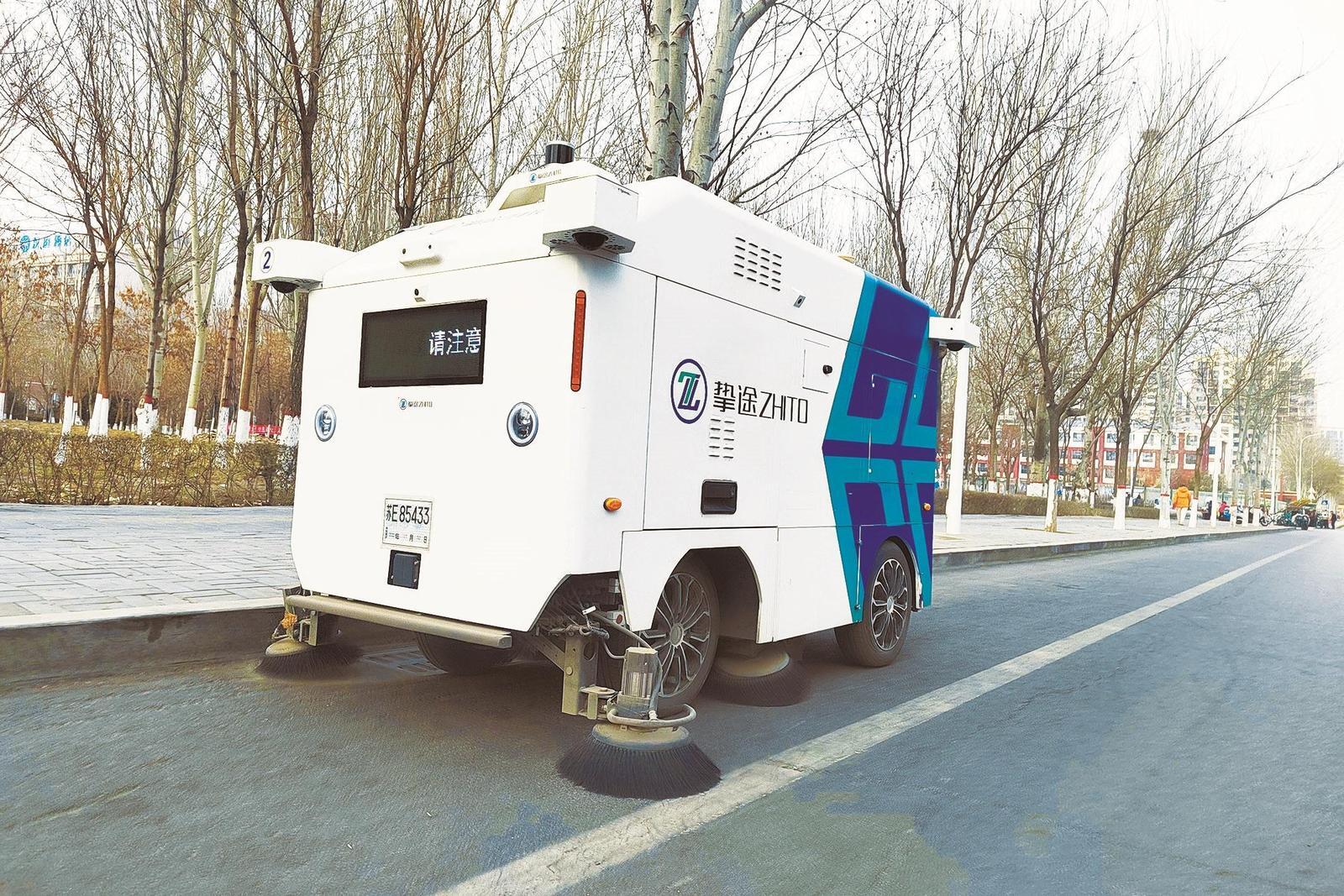 智能清扫车正在进行垃圾清扫工作。记者 郎凯 摄