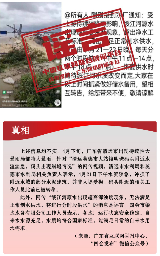 广东清远英德洪水致码头崩堤?绥江河原水水源不足,将进行分时段供水?
