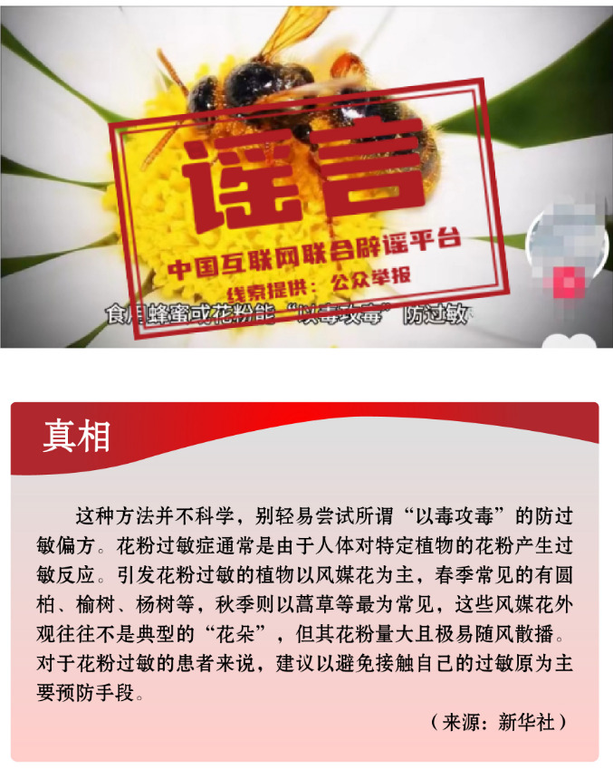 食用蜂蜜或花粉能“以毒攻毒”防过敏?