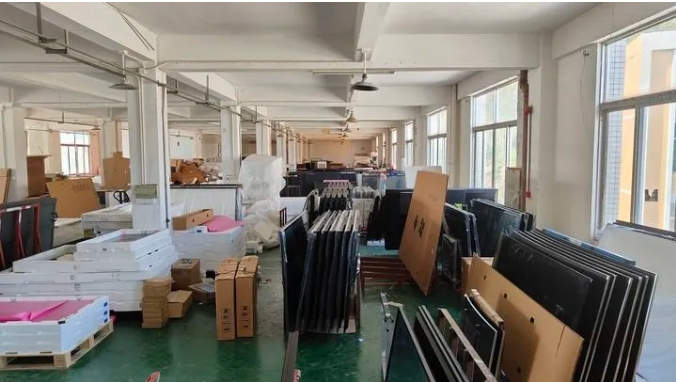 专案组查处违法组装电视机的车间时发现,库房内堆积着大量电视机外壳、主板和白板显示屏,还有很多品牌透明贴纸,以及部分准备发出和退回的假冒品牌电视机。