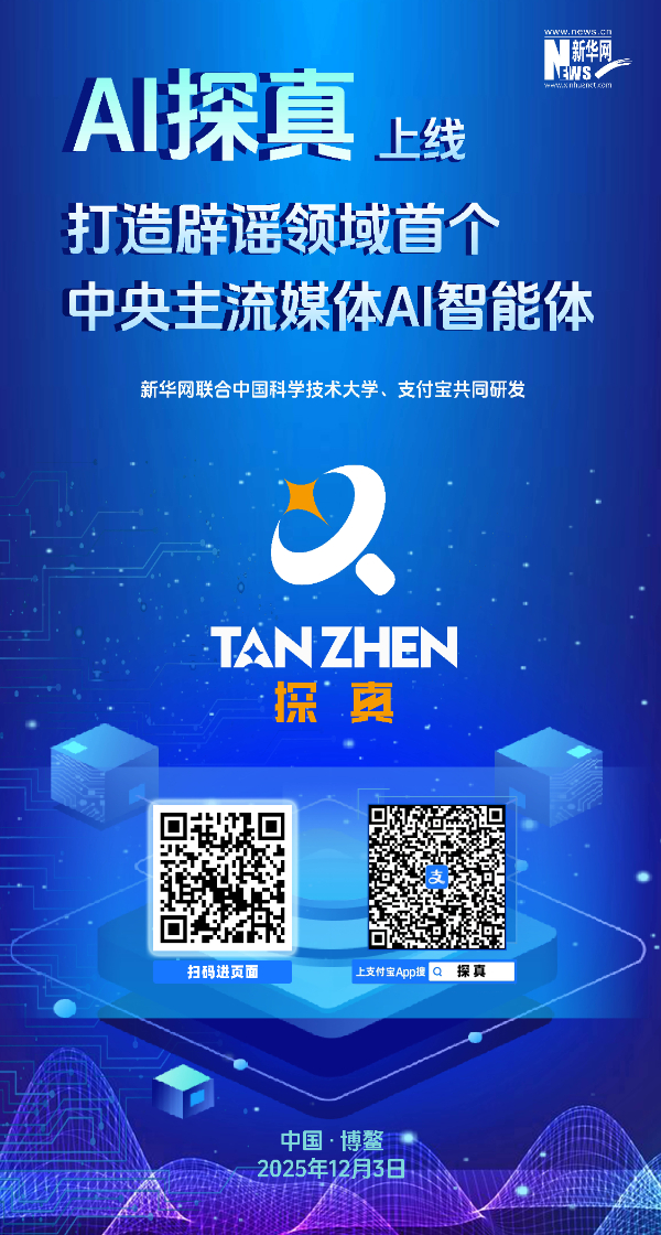12月3日,由新华网联合中国科学技术大学、支付宝共同研发的“AI探真”智能体在企业家博鳌论坛2025新消费发展论坛上正式上线。作为我国辟谣领域首个中央主流媒体AI智能体,该系统的推出为网络谣言治理注入数智新动能,助力营造清朗网络空间。