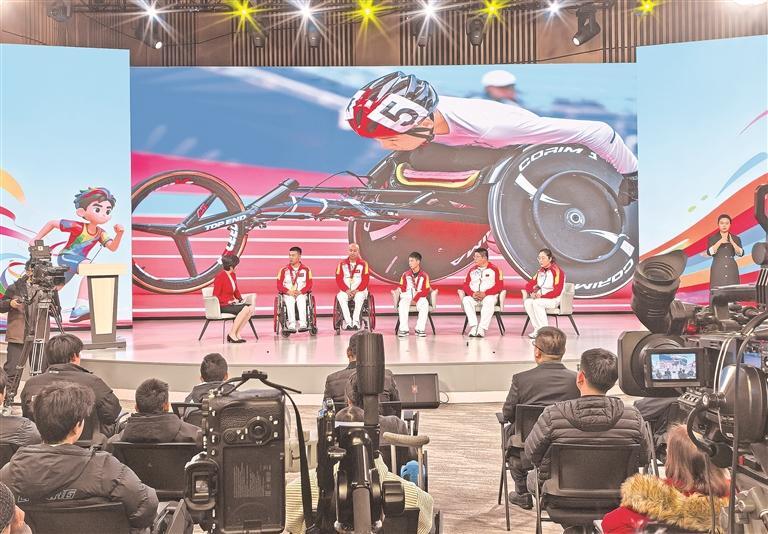 12月24日,自治区政府新闻办在银川举办“拼搏铸荣光 逐梦向未来”全国第十二届残疾人运动会暨第九届特殊奥林匹克运动会宁夏代表团媒体见面会。运动员马宁、马占贵、吴博宇,教练员李卫国,宁夏残联康复和体育工作部主任袁轶萍出席见面会,分享赛场内外的故事。