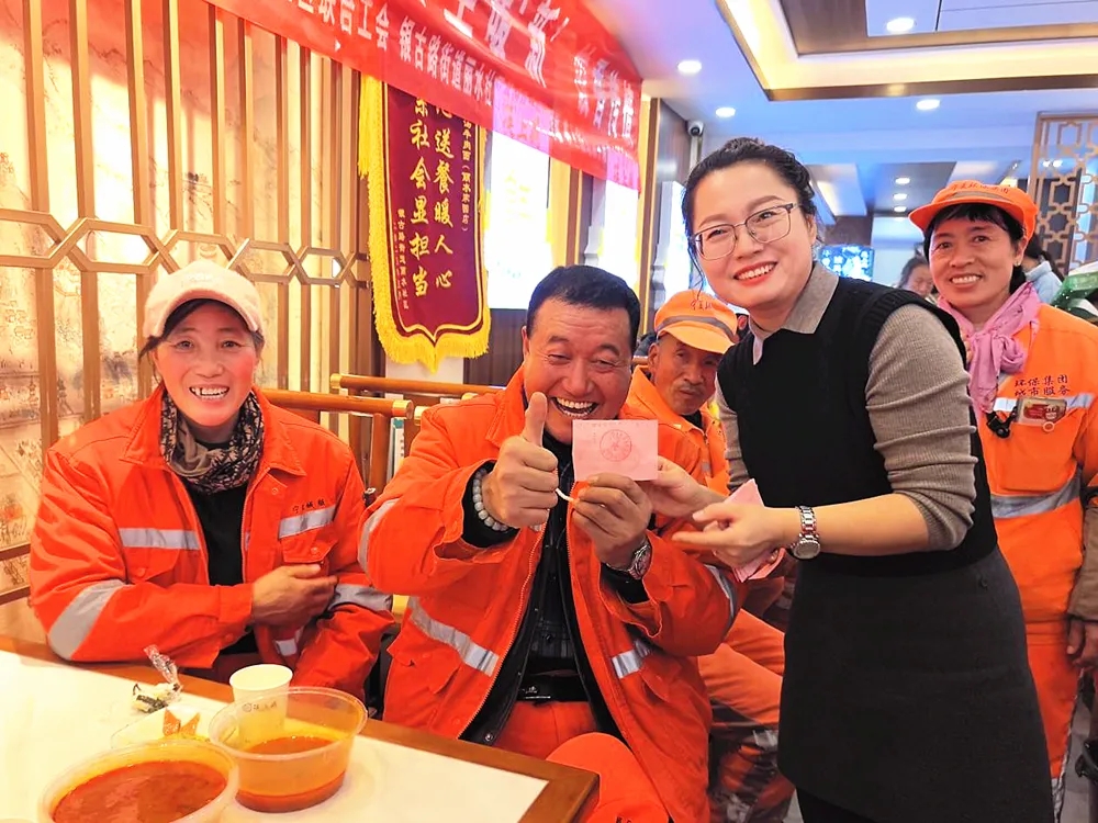 凤凰北街新民社区联合工会则聚焦新业态群体,邀请外卖员、快递员及小微企业职工欢聚一堂,分工协作包制饺子,在传递节日祝福的同时,感谢他们为城市便利运转付出的辛勤汗水。前进街银华社区联合工会依托暖心微驿站,为外卖小哥、环卫工人递上“冬日暖餐”,让大家在寒风中吃上热乎饺子,感受“暖心港”的温情。