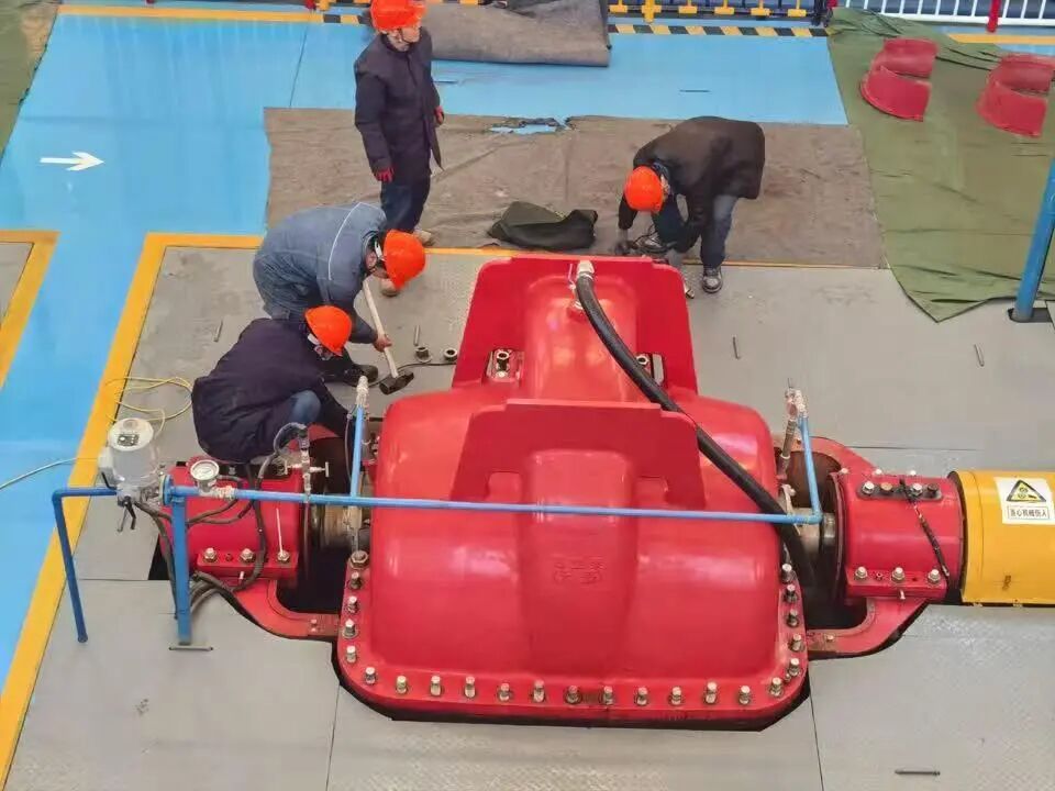 固海扬水管理处职工为泵站进水口安全过冬做好防护